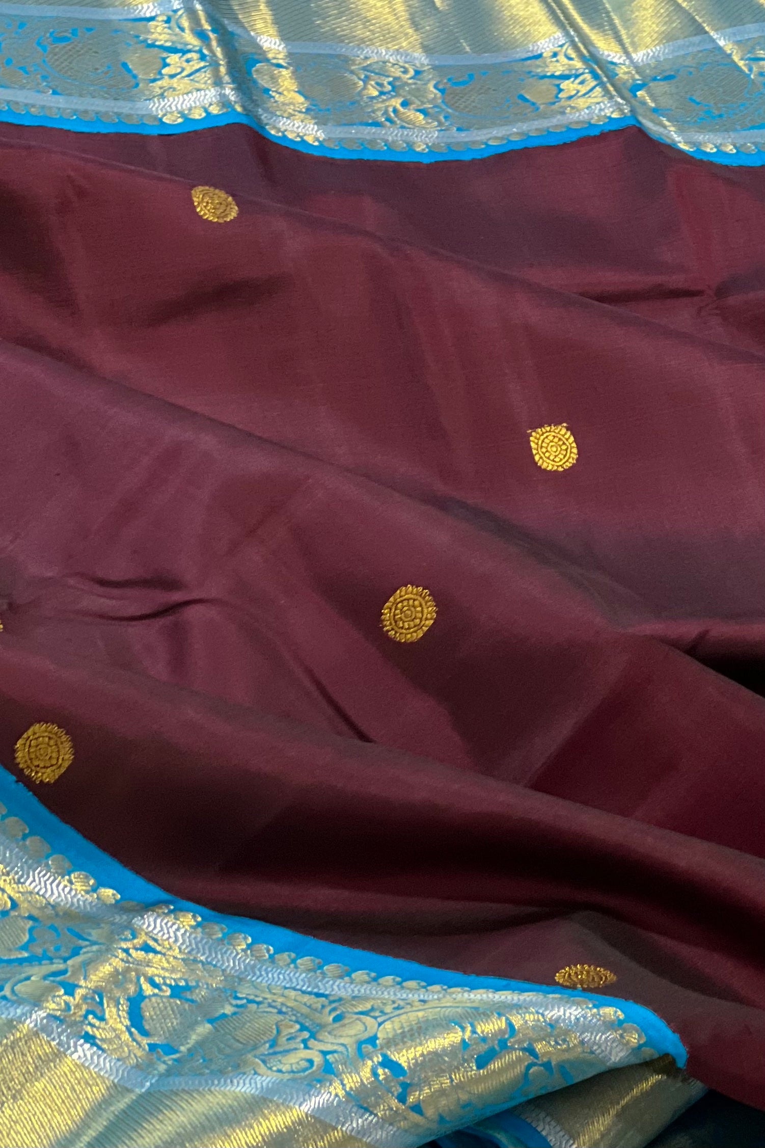 Kanjivaram Silk Saree - AW1223KS Brown/Rama Blue