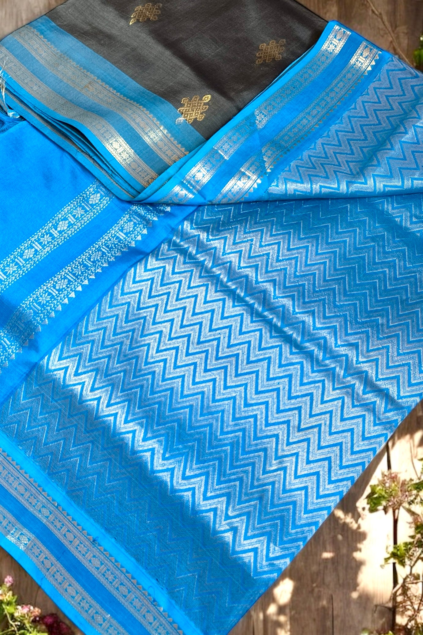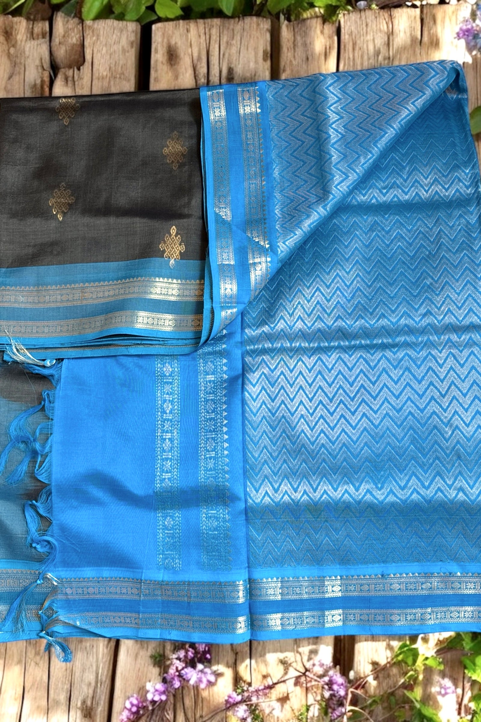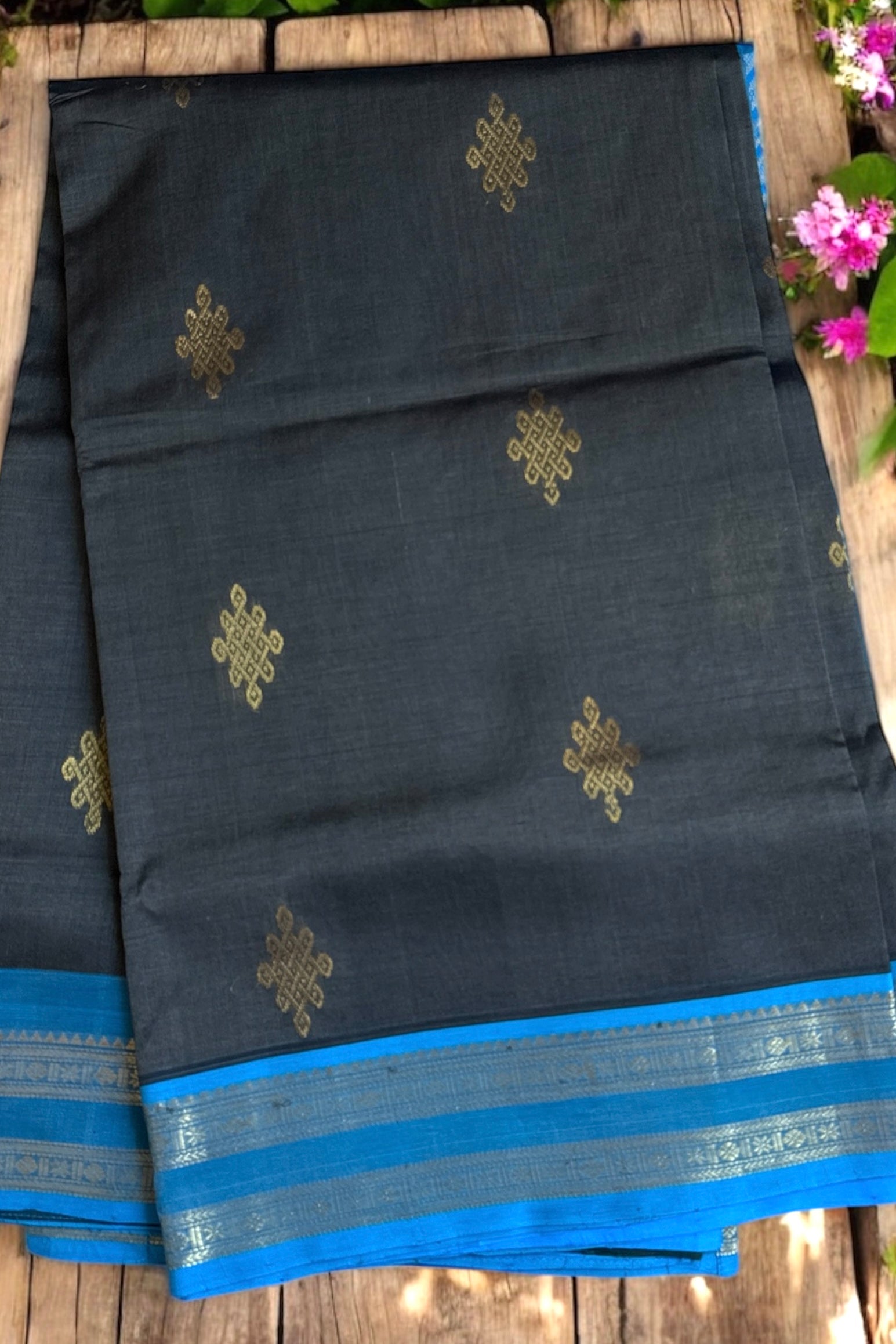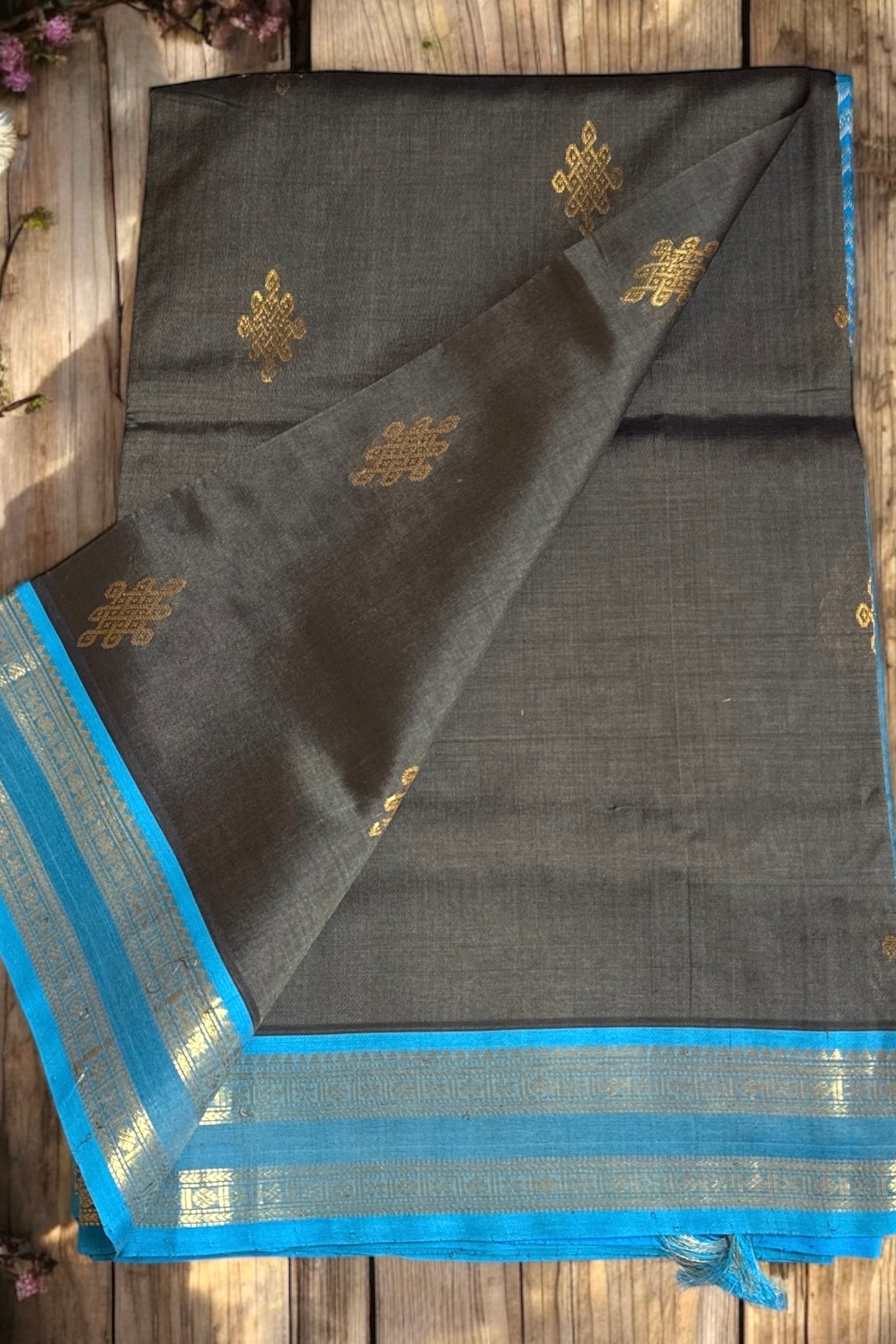Introducing our finest silk cotton saree, handloomed for unparalleled comfort. Adorned with traditional kolam motifs and a grand pallu, this saree showcases our expert craftsmanship and timeless design. Indulge in luxury with this beautiful and versatile piece of drape.