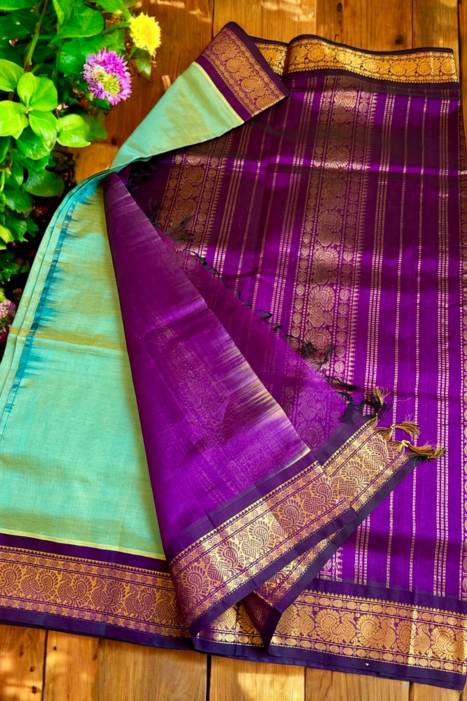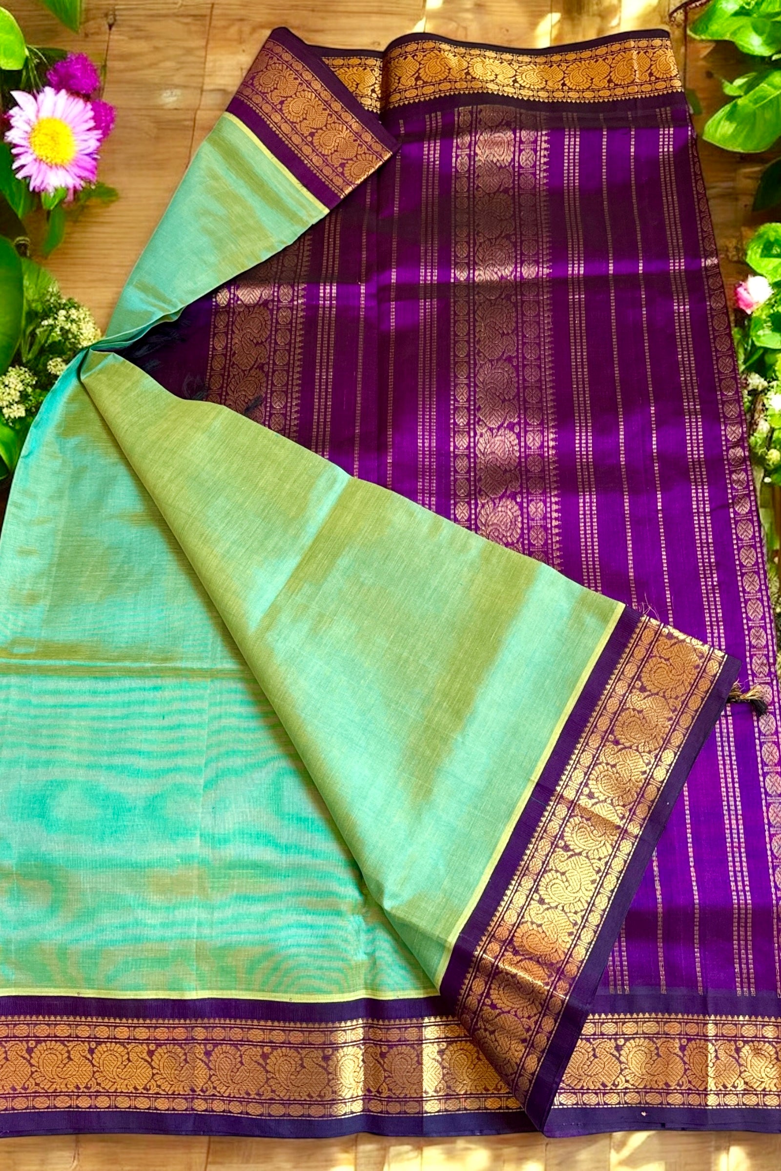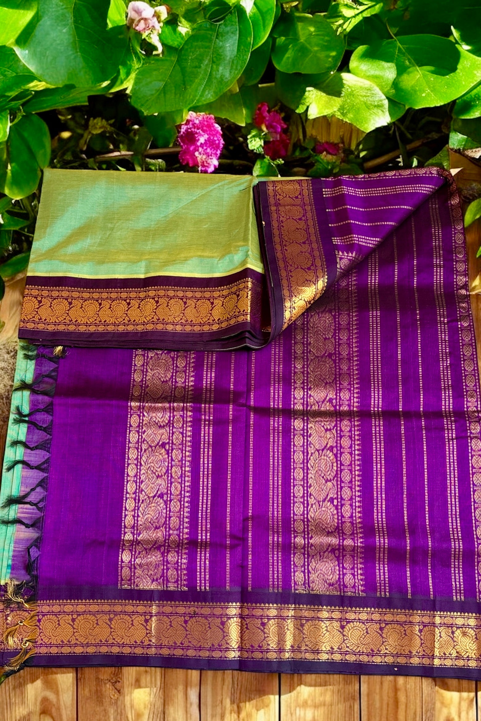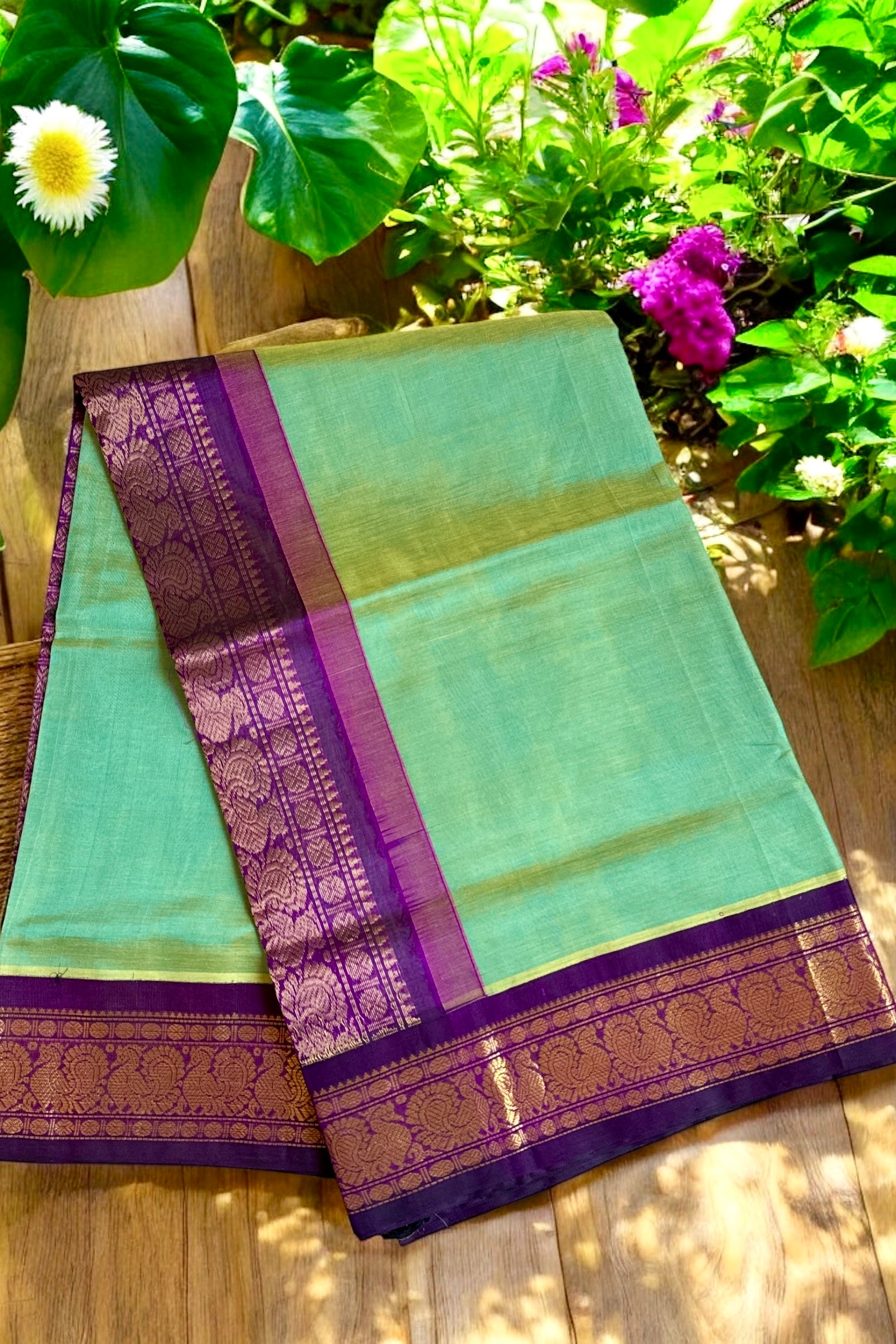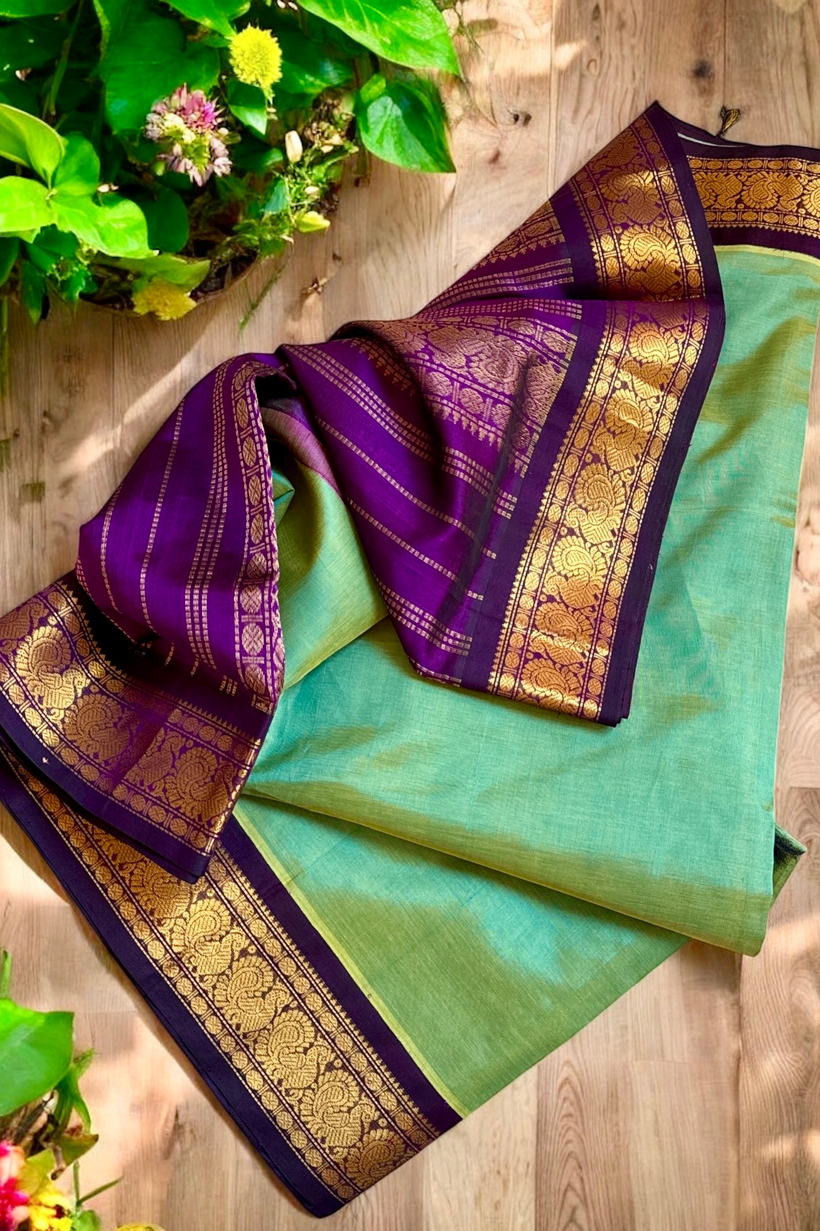 Introducing our finest korvai silk cotton saree, handloomed for unparalleled comfort. Adorned with traditional korvai borders and a grand pallu, this saree showcases our expert craftsmanship and timeless design. Indulge in luxury with this beautiful and versatile piece of drape.